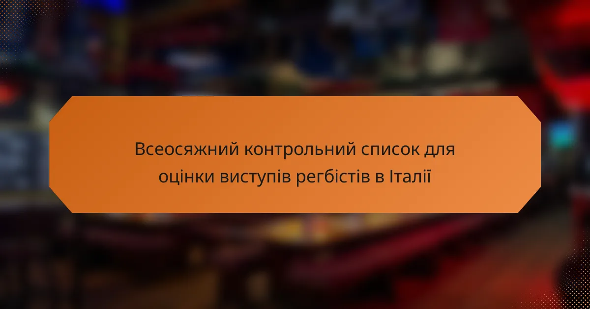 Оцінка виступів регбістів в Італії передбачає комплексний контрольний список, що охоплює ключові показники ефективності (KPI) в різних аспектах гри. Зосереджуючи увагу на фізичній підготовці, технічних навичках, тактичному розумінні, психологічній стійкості та командній роботі, тренери та скаути можуть ефективно оцінити внесок гравця та його потенціал для розвитку. Цей структурований підхід забезпечує врахування всіх критичних аспектів виступу гравця, що призводить до більш обґрунтованих рішень у розвитку гравців та відборі команди.